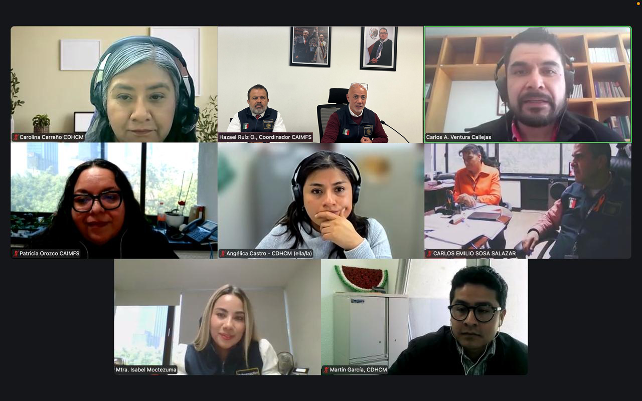 Cuauhtémoc, Ciudad de México. Este día el titular de la Coordinación para la Atención Integral de la Migración en la Frontera Sur (CAIMFS), Antonio Hazael Ruíz Ortega, sostuvo una reunión virtual con autoridades de la Comisión de Derechos Humanos de la Ciudad de México, encabezadas por su secretario ejecutivo, Carlos Ventura Callejas, en representación de la presidenta María Dolores González Saravia.