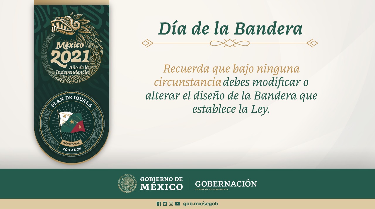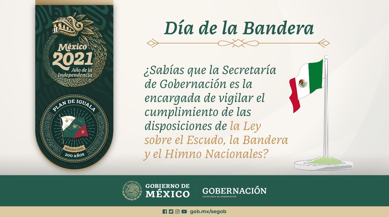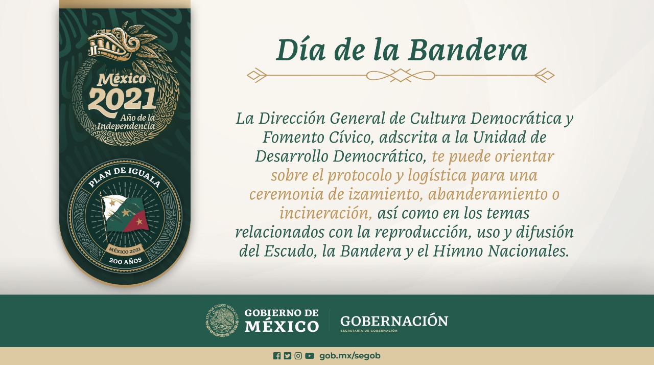 La Secretaría de Gobernación vela por el cumplimiento de las disposiciones enmarcadas en la Ley sobre el Escudo, la Bandera e Himno Nacionales. En este #DíaDeLaBandera, el Titular de la Unidad de Desarrollo Democrático, Miguel Lucia Espejo, nos habla sobre nuestra bandera como símbolo de unión nacional.