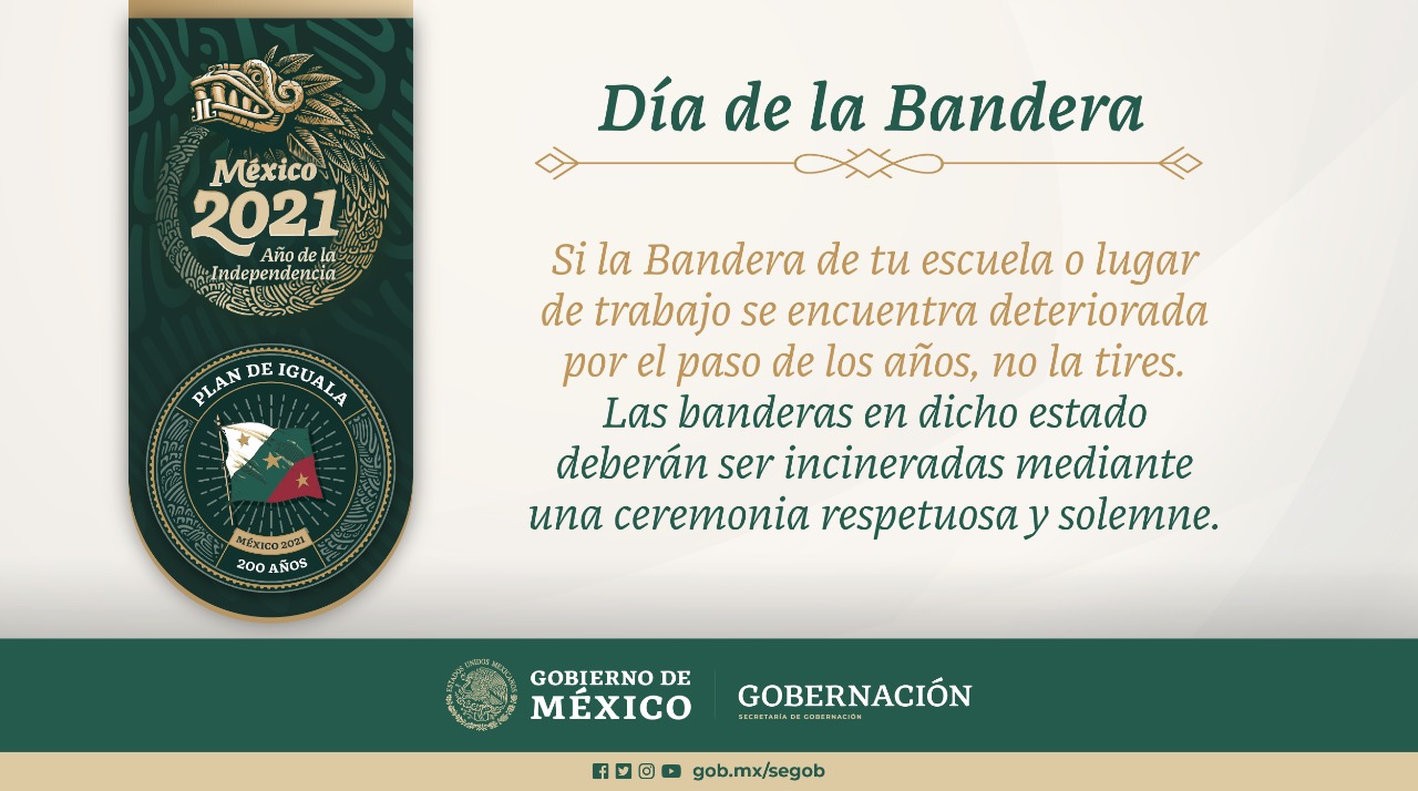 En este Día de la Bandera de México, te compartimos la siguiente información, para que conozcas su historia a lo largo de los años y siempre demuestres tu patriotismo con respeto a nuestro lábaro patrio